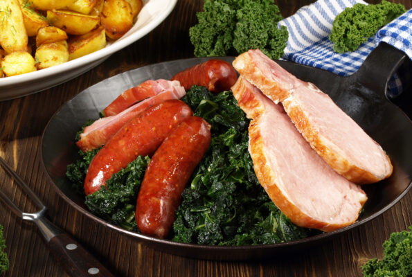 Zum Grünkohl werden klassisch Kartoffel als Beilage gereicht. Meistens sind …